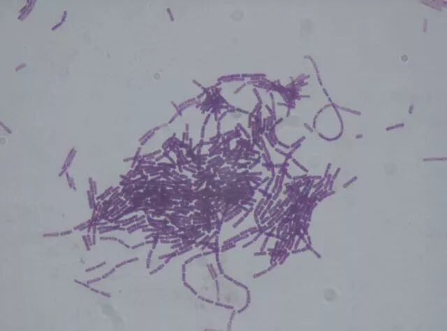 1000倍光学显微镜下,革兰氏染色的苏云金芽孢杆菌。图片:Dr. Sahay / wiki commons