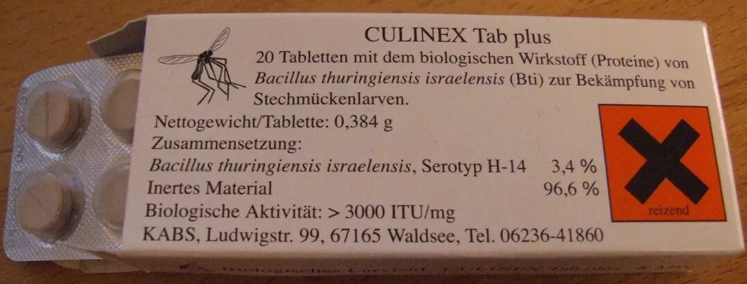 用来防治蚊虫的商业化苏云金芽孢杆菌片。图片:Claus Ableiter / wiki commons