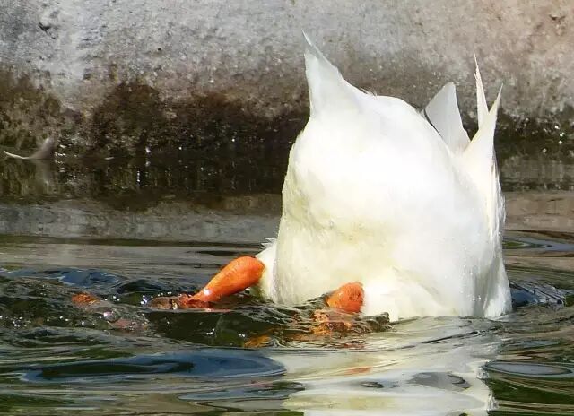 河鸭属的鸭子们游泳时身体多半都在水面上,无法潜水,在水里觅食时最多只能把身体的前半部分没入水面,屁股是一定露在外面的(天鹅也是这样),看起来很肥。