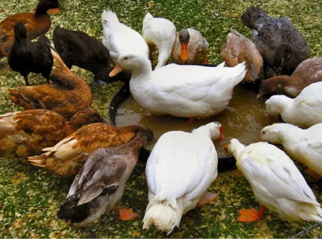 除了家鸭之间不同色型交配产生的颜色多变的后代外,有时候野生的绿头鸭也会进入家鸭的活动区域觅食,顺便交配留下后代。