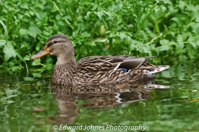 绿头鸭雌鸟跟雄鸟繁殖羽外观差别很大,喙橘色中掺有灰黑色,全身都是黄褐色的,几乎布满了大大小小的深色纹理,和鸭属的其他鸭子们的雌鸟其实长得都差不多。所以如果只有雌鸟没有雄鸟的话,在野外并不容易辨识种类,多半都要靠翅膀上的“翼镜”来辨识。