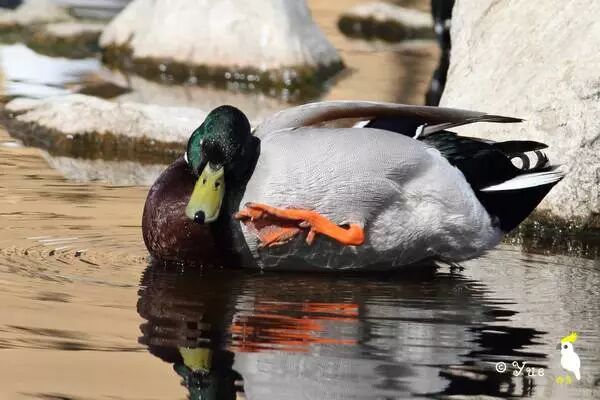 绿头鸭雄鸟挠脸。图片:鹰之舞