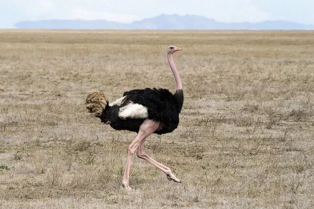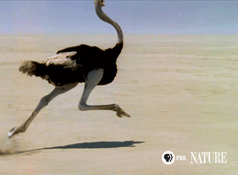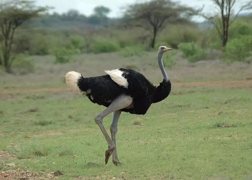 鸵鸟是陆地上两足奔跑最快的动物,有力的大长腿跨出一步就是3~5米,最高时速可以达到70千米,是,比我研究的熊猫(40千米/小时)速度快出近一倍。而且鸵鸟耐力十足,可以连续高速奔跑半个小时。
