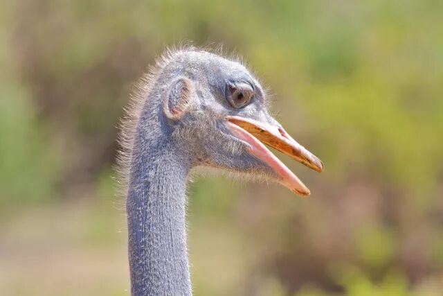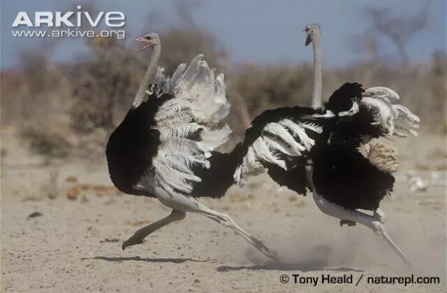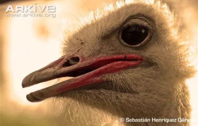 在陆地生物中,鸵鸟还有着绝对尺寸最大的眼睛,甚至大过了它们自己的脑子。为了避免风沙,当然还有迷人的、浓密的长睫毛,眨眼的频率只有一分钟一次。不过,当你听到鸵鸟的叫声,你会忘记它动人的眼神,因为最著名的鸵鸟叫声就像狮子吼叫一样,威力十足。