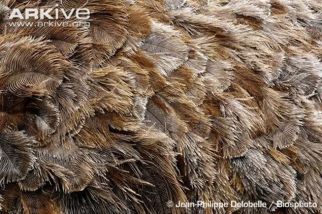 相比较可以飞行的鸟类,鸵鸟的翅膀格外小,但在它们高速奔跑时,可以辅助改变方向。由于鸵鸟丧失飞行能力,羽毛并不发达,羽枝上无小钩,因而不形成羽片,但羽毛也因此格外蓬松柔软。