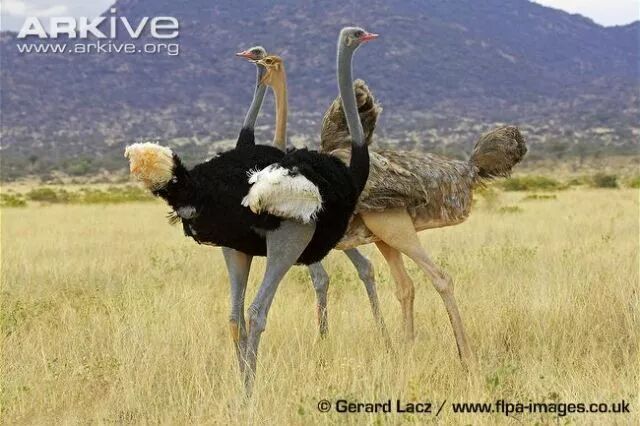 索马里鸵鸟,两雄一雌。图片:Gerard Lacz / www.flpa-images.co.uk