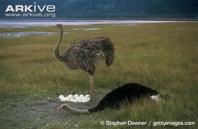 根据亚种的不同,鸵鸟的配偶关系有所不同,但大部分是一夫一妻多妾制。在一群母鸵鸟中有个厉害的“管家婆”,交配产蛋最有优先权,下的蛋会占据窝的中心位置。而其他地位低的雌鸟则只能把蛋产在外围。权力大责任也大,孵蛋主要由地位高的雌鸟和雄鸟来,但因为一屁股坐下去,只能盖住最多20颗蛋,“妻子”可能把周边不是自己的蛋踢开不管。