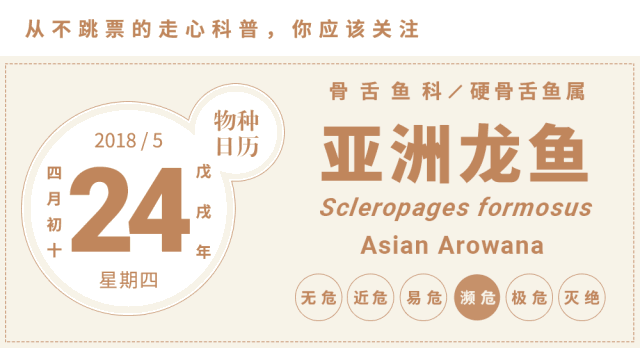 不过截止目前,亚洲龙鱼的群体状况仍是濒危(EN)。我们对于这种鱼的保护,任重而道远。