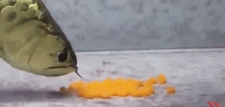日复一日,雌雄鱼感情逐渐升温,直至情浓时,雌雄鱼并排游动,雌鱼排出她准备已久的橙红色卵子,随后由雄鱼提供精子。这场由亚洲龙鱼带来的系列求偶演出,最终随着雌雄鱼配子的释放而宣告结束。