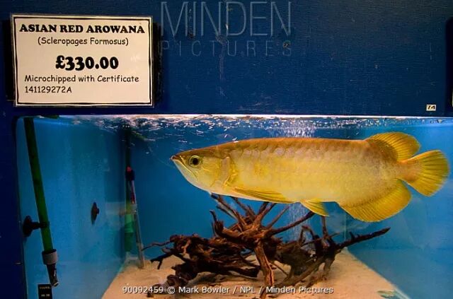 被标价售卖的亚洲龙鱼。图片:Mark Bowler / NPL / mindenpictures