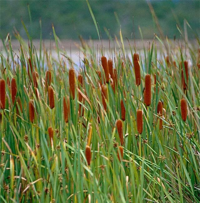 香蒲(Typha orientalis)也是著名的“蒲”字辈,它属于香蒲科香蒲属,和菖蒲也攀不上亲戚,只是长得像而已。香蒲又叫水蜡烛,一到开花季节,田野里一串串随风摇曳的“烤肠”就是它了。