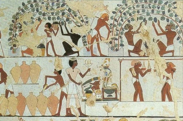 古埃及新王朝的壁画,描绘了人们在葡萄园劳作的场景。图片:pixpo.net