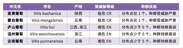 红色名录中的葡萄属物种。数据来源:《中国物种红色名录》第一卷