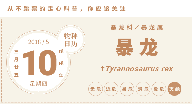 正如上次介绍的三叶虫一样,恐龙是另一位担当了宣传古生物重任的课代表,而其中最有名的,莫过于大名鼎鼎的暴龙(Tyrannosaurus rex)了。