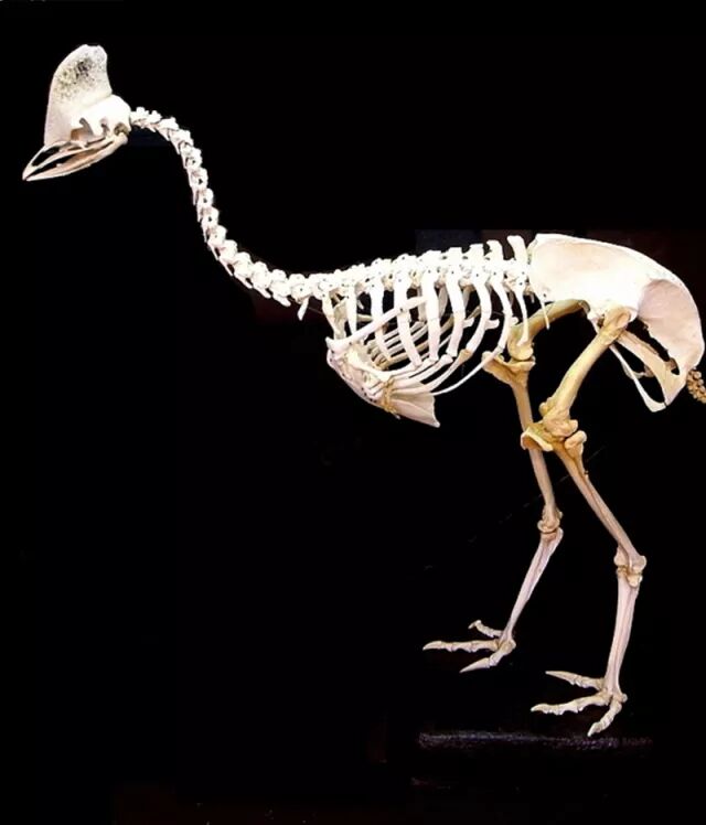←左右滑动查看→依次为几维鸟、鸸鹋、鹤鸵,以及鹤鸵骨骼,它的小短手就算只有骨架都很难看见。图片:Maungatautari Ecological Island Trust & Benjamint444 & Summerdrought & opencage photographer / wikimedia