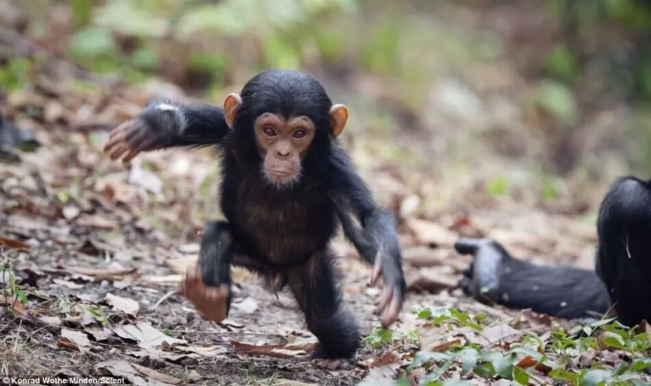 这张幼猩的蹒跚学步也传播极广,你很可能见过。