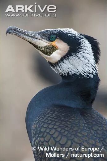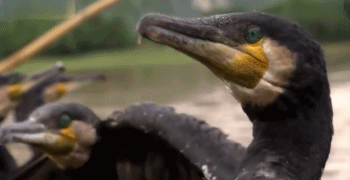 论起长相,鸬鹚谈得上几分诡异。它最突出的特点是有一双深邃而泛着蓝光的眼睛(虹膜呈蓝色),脸颊及喉部呈现白色,嘴基发黄,喙长而厚重,并且前端带有向下的弯钩。我相信如果你有机会和鸬鹚近距离对视的话,完全有理由认为这就是一张“鬼脸”。
