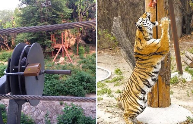前几年,北京动物园出了一件让人想笑又心疼的事儿:一只雄性东北虎因为不爱运动导致后肢缺乏力量,在交配过程中没有力气举起沉重的身体,持续保持交配姿势而屡屡不能完成“虎事”。那么该怎么办?大家一定都想得到:该让这只老虎锻炼。但野生动物不是狗,甚至不像某些猫咪那样可以强制带上项圈出门遛弯,该怎么让它们锻炼呢?