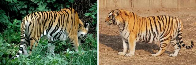 胖云豹大家一眼就能看出体型不对。那下面这两只老虎呢?你觉得哪一只更健康?