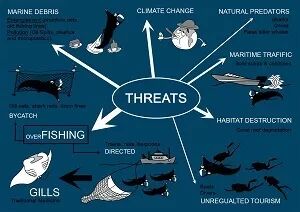 海洋污染(尤其是海洋塑料垃圾)、气候变化、栖息地破坏和不规范的潜水活动等也都是造成蝠鲼种群数量减少的因素。其中塑料污染不仅威胁着海洋生物的生存,还能通过食物链、栖息地破坏等方式间接影响我们。