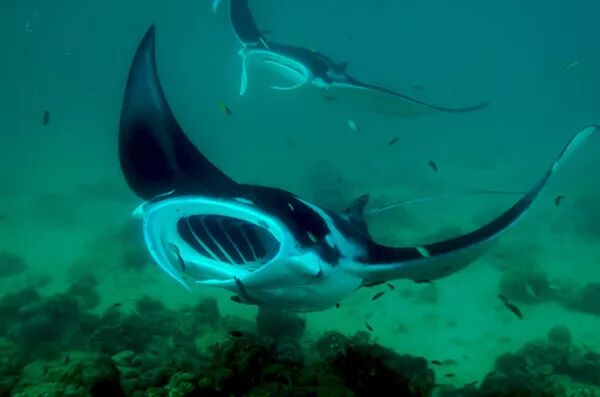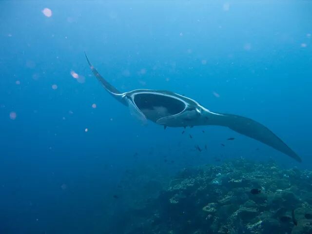 蝠鲼其实是很温和的大鱼,丝毫没有“魔鬼鱼”名字般“吓人”的气场,能在水中与它们相遇绝对是一件非常梦幻的事。当然前提是我们没有惊吓到它们。