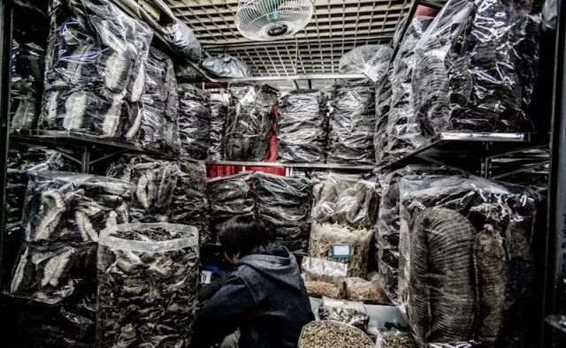 海鲜干货店中待售卖的膨鱼鳃。图片:Shawn Heinrichs / virgin.com