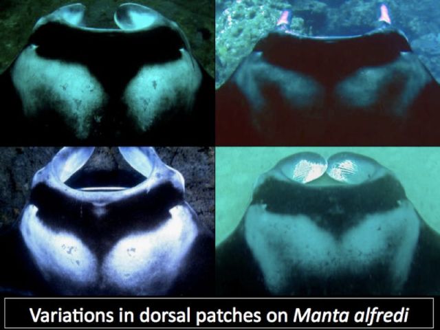 阿氏前口蝠鲼的白色肩纹。照片:mantamatcher.org
