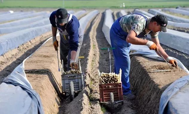 白芦笋的售价一般要比绿芦笋的高上不少,这是收割白芦笋的场景。图片:thunertagblatt.ch