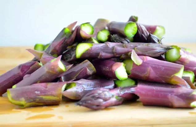 近年来意大利人民培育出紫色的芦笋品种,紫芦笋和其他紫色的蔬菜瓜果一样,紫色来自于花青素,不过紫芦笋的花青素主要集中在外皮,并没有贯穿全株,所以如果加热时间稍长就会让外皮的花青素分解流失,芦笋也就失去紫色了。紫芦笋的粗细和白芦笋差不多,口感则更接近很甜的绿芦笋,如果种植时注意用药的话,是可以生吃的,非常脆甜。