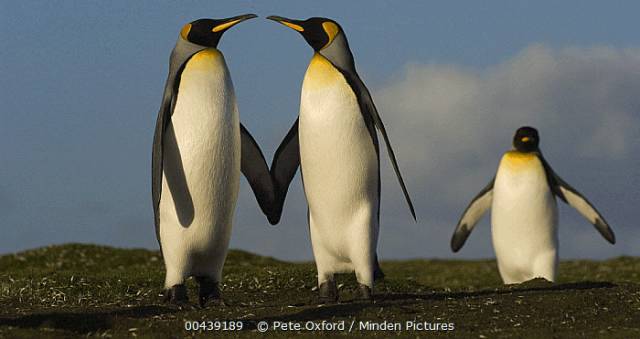 王企鹅一次能产一到两个卵,但是很难同时养大两个企鹅宝宝,有时会不得不放弃其中一只。男同王企鹅“夫妇”有时就会收养这样的“弃蛋”,把它抚养长大。