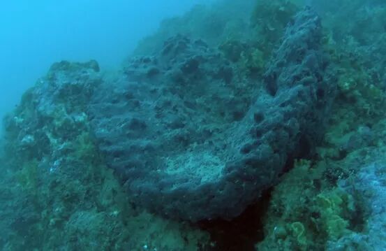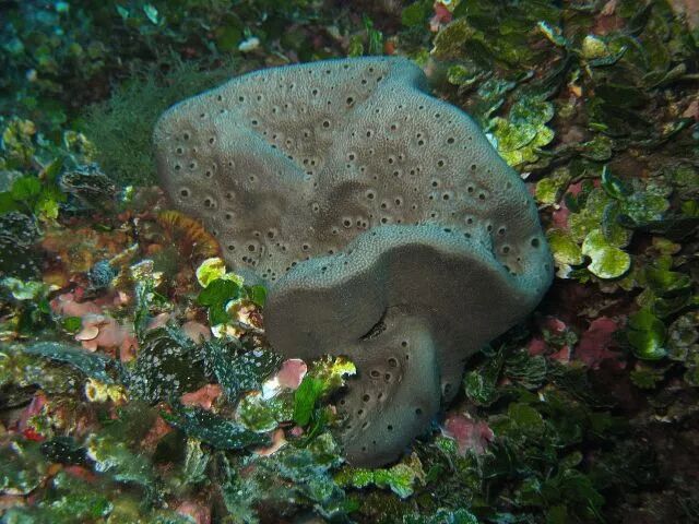 市场上干燥后的沐浴角骨海绵呈黄白色,大小不一,形状也多变,看起来就像是晒干的海藻。活着的时候,沐浴角骨海绵多呈灰紫色,在海底的礁石等物体上呈不规则生长,一动也不动,即使用手去撕扯它们也没有任何反应。即使是林奈大神,1759年命名海绵属(Spongia)时也把它归到了藻类植物门。那么注意了,海绵是动物。