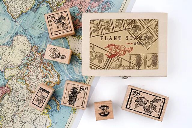 复古风植物邮票印章
