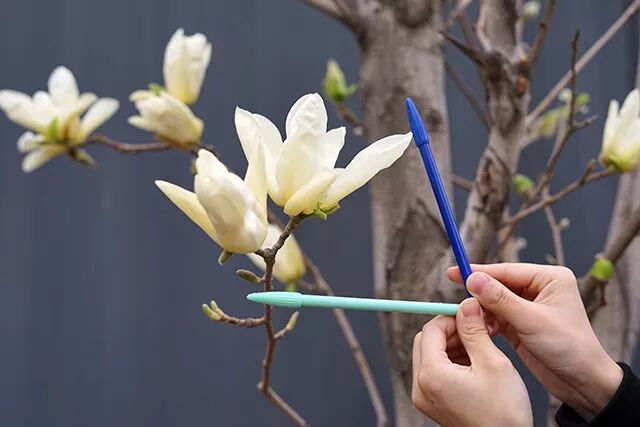 将食指和中指作为取景框,框出目标花。手势可以自由发挥哟,保证用食指和中指框出目标就好啦!
