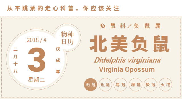 北美负鼠不够可爱,可它们代表了有袋类动物勇于适应环境,与有胎盘的哺乳动物奋勇竞争的荣光;它们在其生境中有重要的作用,维持着生态系统的平衡。