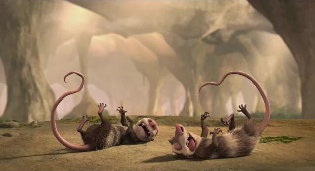 就像电影《冰河世纪》中拍的,很可能北美负鼠的原始祖先已经掌握了装死的技能。图片:《冰河世纪》 / 20th Century Fox