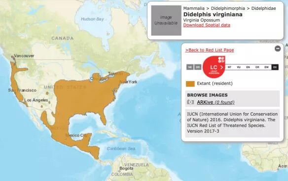 从分布区上看,北美负鼠适应了广阔的生境,分布区域横跨了北美和中美洲,占领了城市郊区、河滩、草原和森林各种栖息环境。它们的分布区域和一些最厉害的捕食者(比如赤狐、狼、郊狼、美洲豹、短尾猫)重叠,却顽强地生存了下来。