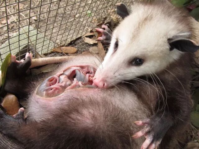 作为有袋类动物,北美负鼠腹部皮肤褶皱形成的“育儿袋”中,能装下超过十个幼崽。图片:Washington Post