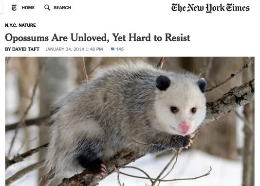 纽约时报呼吁北美负鼠不是害兽,不要随意伤害。图片:New York Times
