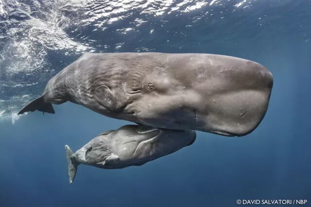 带着幼崽巡游的成年抹香鲸。图片:David Salvatori / NBP