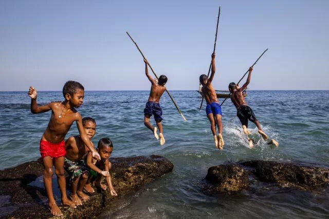 拉马勒拉村儿童练习捕鲸技巧。图片:huffpost.com