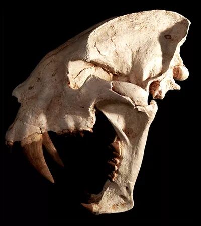 《金刚狼》中剑齿虎和短剑剑齿虎的头骨化石。左图:The Wolverine;右图:Coluberssymbol / wiki commons