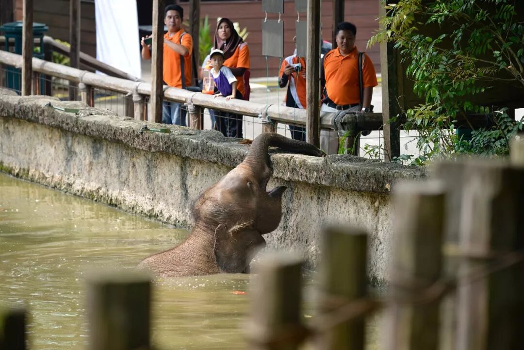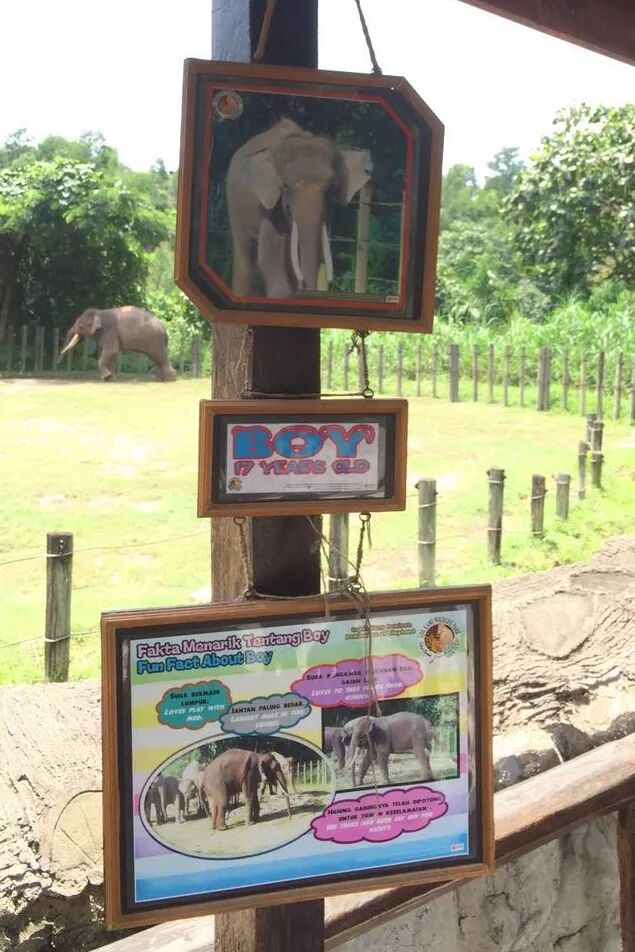 大致上,洛高宜动物园里四处都有禁止投喂的标语,一般还都是中、英、马三种文字标识。这边的游客也不太喜欢投喂的样子。有些园舍,例如这个象舍,想投也得想想办法,那边人不像国内的游客,投喂起来花样那么多。