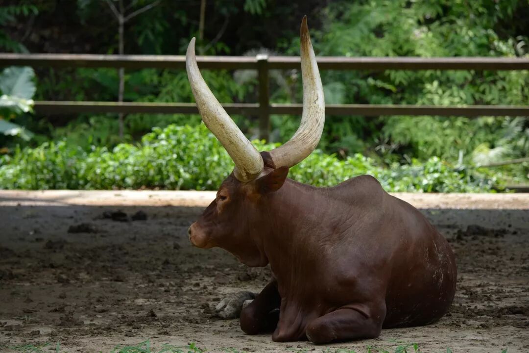 剩下的动物里,最好玩的就是馆舍基本在一起的瓦图西长角牛和爪哇野牛(Bos javanicus)。前者雄性角巨长无比,后者的雌性角特别小,放一起看……