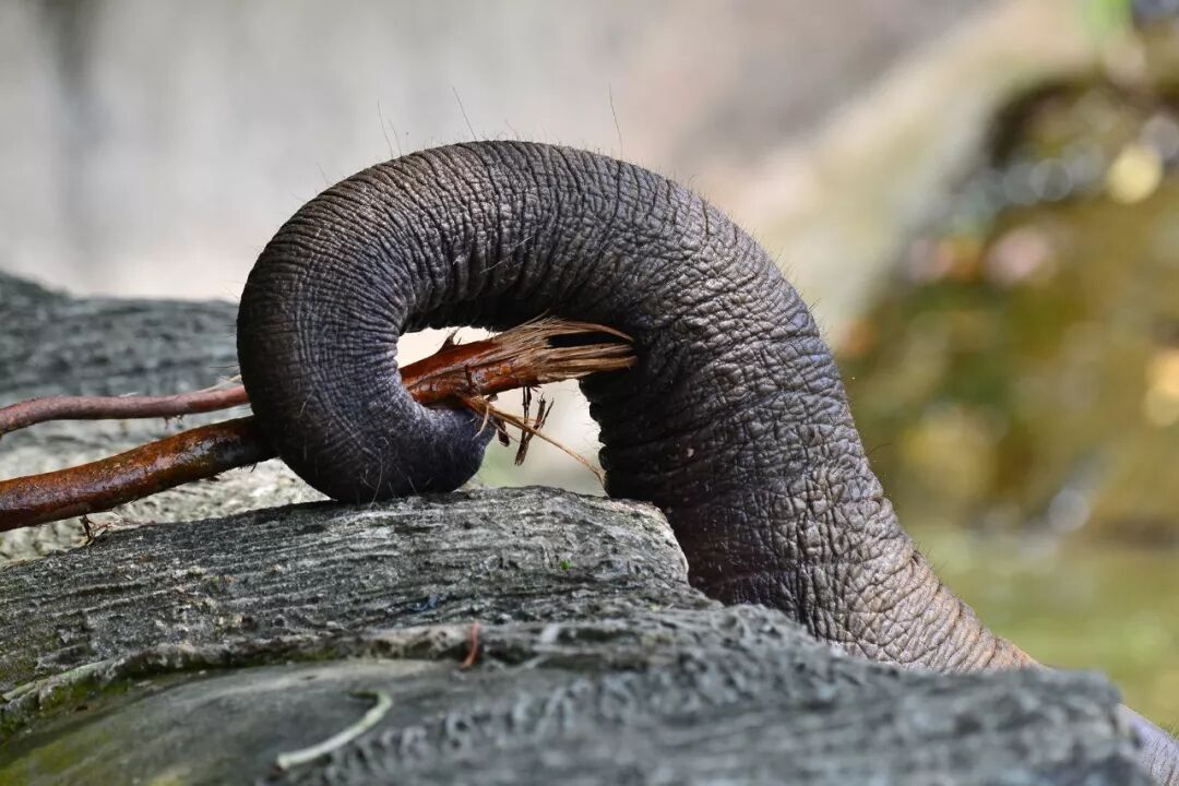还遇到了一个挺好玩的事情。整个场馆差不多是这样的,有个水池,周围有一圈墙。当时我们绕到了象舍的另一边,回头一看,发现了这个: