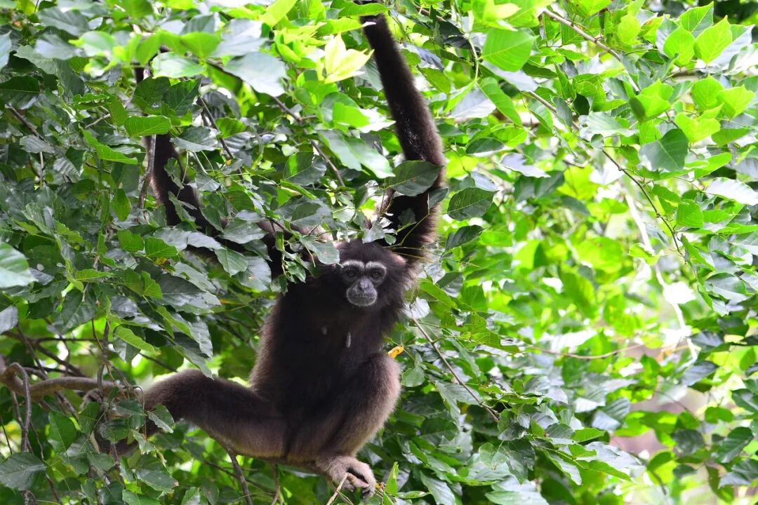 这儿有一对长臂猿,应该是灰长臂猿(Hylobates muelleri)或者黑掌长臂猿(Hylobates agilis),忘看牌子了,这两个种我也不太会分,囧。