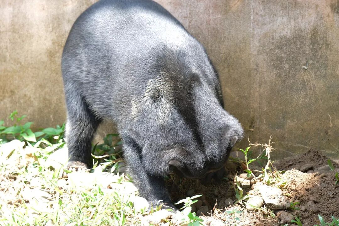 日熊的场馆也是类似于熊山的开放下凹式场馆,比北动的老熊山好在里面有很多大水泥馆,熊可爬可藏,但植物丰容几乎没有,这比北动的新熊山差远了。这样的场馆要在国内,就别想看刨地等自然行为了,都得被投喂给毁掉。但这边投喂比较少,但肯定有,因为: