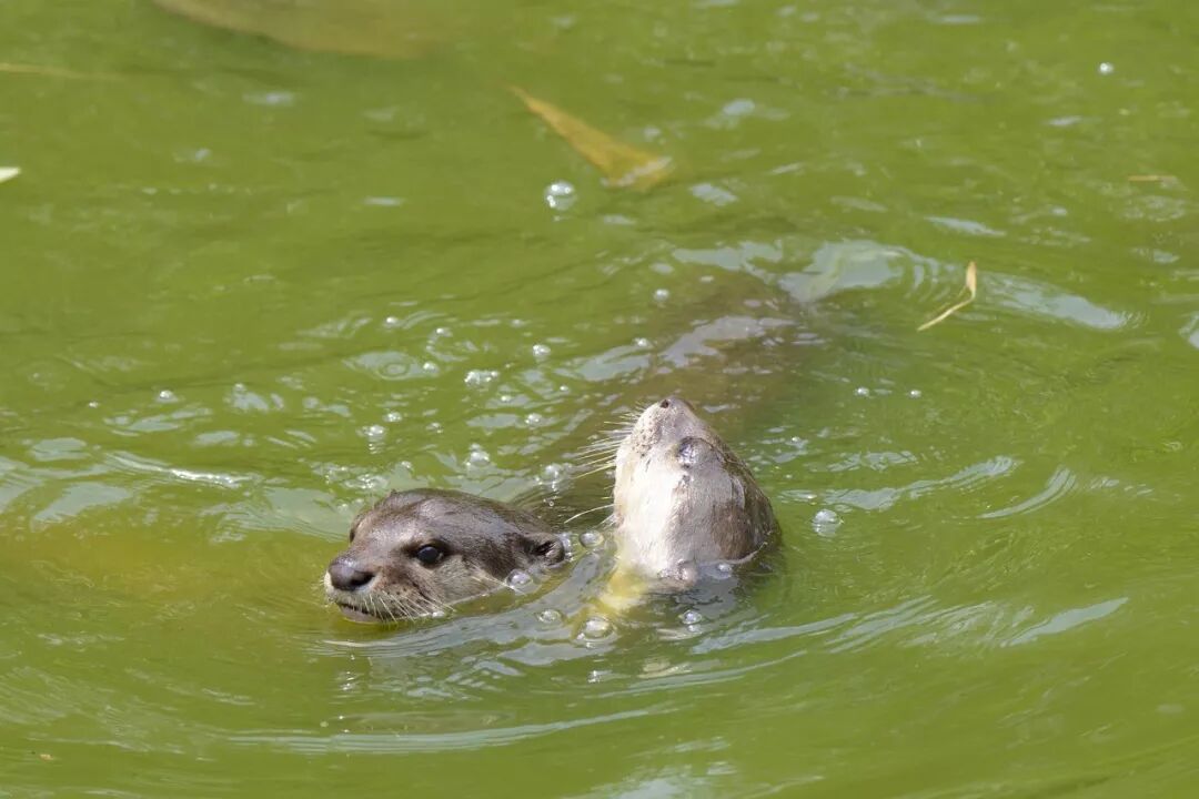 长臂猿岛周围的小河里有一群水獭。