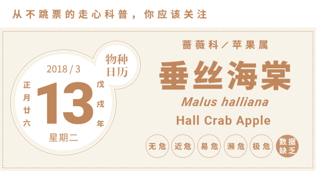 正如文章一开始我们说到的,垂丝海棠品种还算多,日子过得还不错,海棠就悲剧了。如今除了个别植物园及育种园还有一两株海棠,大多数公园与果园中已经见不到它。也许在不久的未来,海棠只存在于标本馆或者其他观赏海棠的血脉中。这个让古人为其描摹为其欢喜的美丽物种,因为人类的喜好而出现,也可能随着人类喜好的变迁而消失。