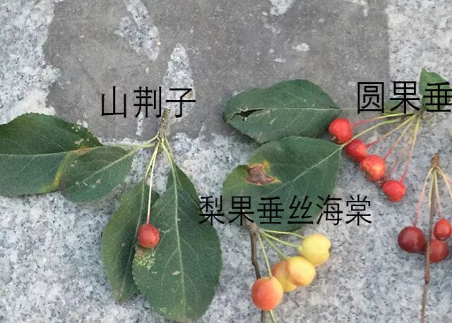 古代有“白棠”“赤棠”之分,前者为今之杜梨(Pyrus betulifolia),果实可食;而后者很可能是山荆子(Malus baccata),果实小而红艳,味道却酸涩难吃。古人不善区分,因为花相似,叶相仿,果实亦雷同,所以把结小果子的梨属杜梨与苹果属山荆子归为一类,是极有可能的。