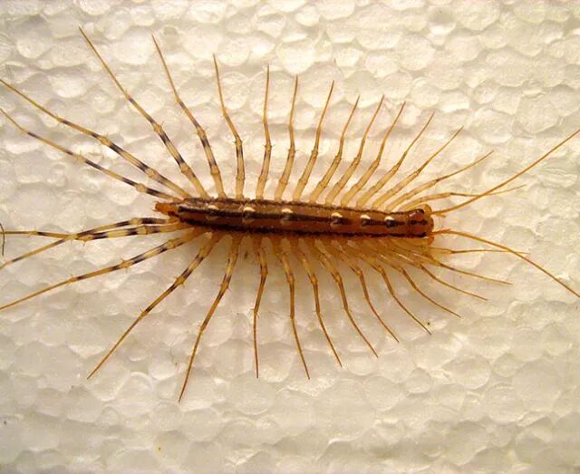 和上面的化石相比,是不是感觉大不一样?大部分三叶虫化石宛如一块浑圆土坷拉,而真正的三叶虫看起来全身都是腿,腿长得还特别密,颇有蚰蜒风范(滑动上图看蚰蜒,虫恐慎入)。如果大部分三叶虫化石都能保留腿部,说不定它们当初就被命名为“海蚰蜒”了,正好和捕食它们的海蝎子凑成相爱相杀的一对。